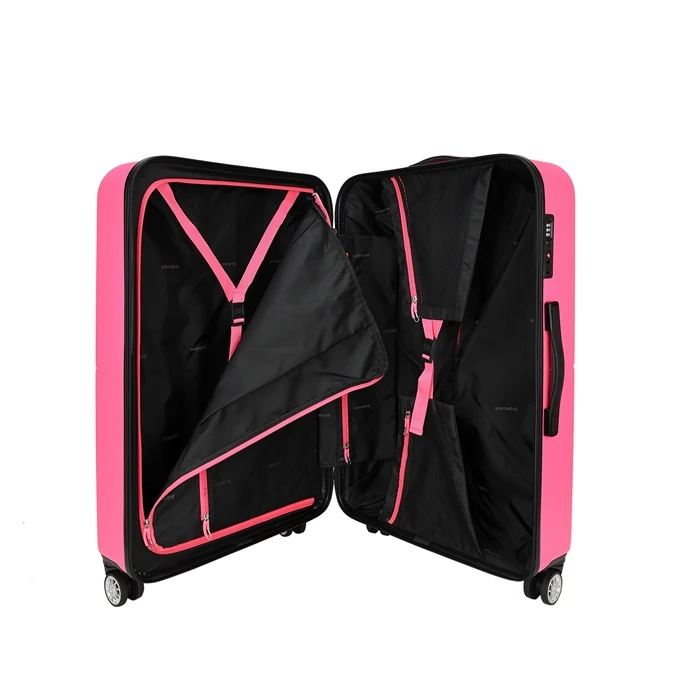 De Decent Neon-Fix Trolley 76 is een hippe grote koffer in een mooi kleurenpalet. Deze ruime koffer biedt ruimte voor ongeveer 20kg aan bagage en heeft 4 wielen waardoor hij gemakkelijk te vervoeren is. Daarnaast kun u zorgeloos naar de VS reizen door het TSA cijferslot.